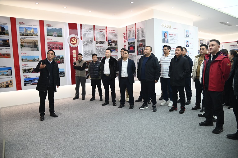 在谢泽波总裁陪同下,嘉宾先后参观集团陈列室与鑫坤机械车间。陈列室通过图文、实物,展现仟坤自 2000 年创立以来,从单一房产建筑业成长为房产建筑与机械制造双核驱动的多元化民营企业集团的发展历程, 集团“诚信.奋进” 的企业精神和“以德兴企,以义生利”的企业价值观得到了各位青年企业家的肯定。