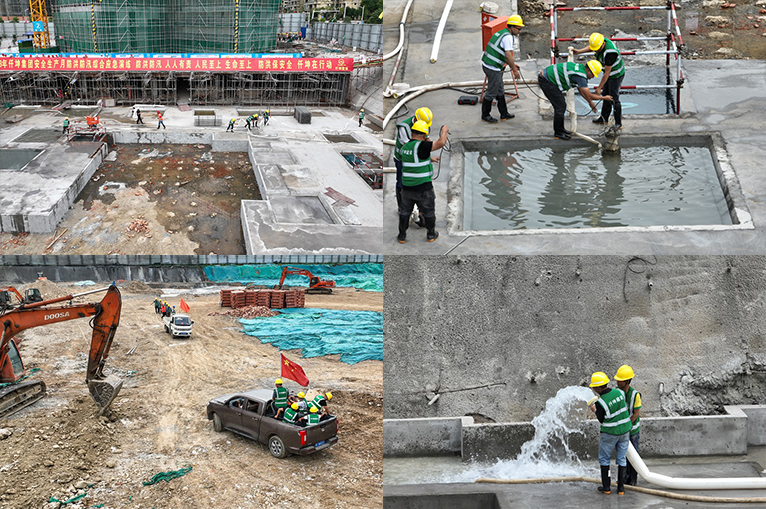 “报告总指挥由于雨量过大,导致市政雨水管网倒灌...”在报告声中防汛演练正式拉开帷幕。警报响起,疏散组持警戒带迅速行动快速封锁现场,医疗救护组配合抢险救援小组搬运受伤人员。与此同时电力抢修、物资转移、抢险排水三个小组同时进场,在成功恢复临时用电后,便立即开始安装水泵、铺设水管、电缆进行排水。在大家的共同努力与配合协作之下,“汛情”得到了有效的控制。演练圆满结束。