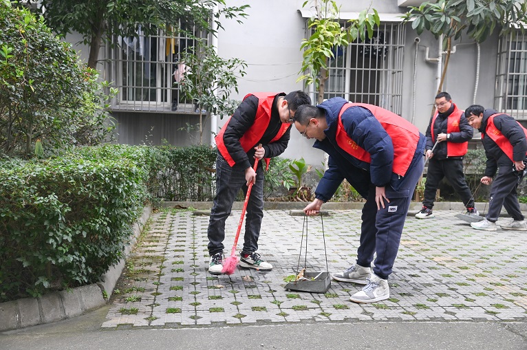 上午10点仟坤青年志愿者们分成多个小组,大家带上手套、手持扫把、拾物钳等工具,开始了对整个公租房小区内的清洁工作,一个个红色的身影穿梭在小区的各个角落,大家神情专注,动作矫健。枯枝落叶、烟蒂纸屑等垃圾被一扫而空。