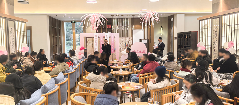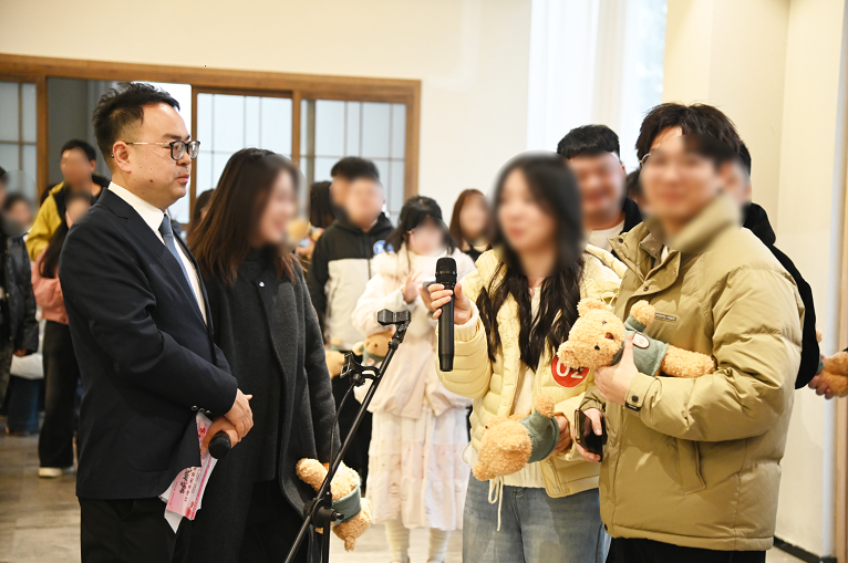 伴随着温馨的音乐,活动正式拉开帷幕,前来参与的青年们朋友们有序签到,每位参与者都获得了温泉票与购房基金抵扣券的惊喜福利。仟坤集团常务副总裁赵新强登台致辞,他向到场的青年朋友们表达了诚挚的问候与美好祝愿,传递了集团对青年成长的深切关怀与殷切期许。他表示:“在仟坤,我们不仅追求事业的卓越,更关注每一位员工的幸福,只有员工安心、舒心,企业才能凝聚人心、创造价值。今天这场活动,正是集团践行“以人为本”理念的缩影,我们希望,这里不仅是奋斗的舞台,更是温暖的港湾,不仅是工作的伙伴,更是生活的挚友,我们以茶山为媒,以活动为桥,为大家搭建一个轻松、自然的交流平台,愿大家在这里遇见心动的TA,遇见更美好的自己。”